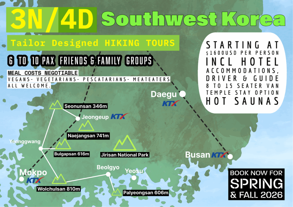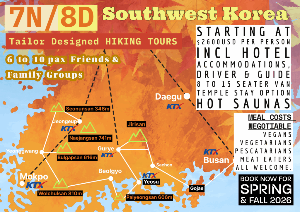 November 2024: 4N/5D (6pax) Jeollanamdo Hiking Tour